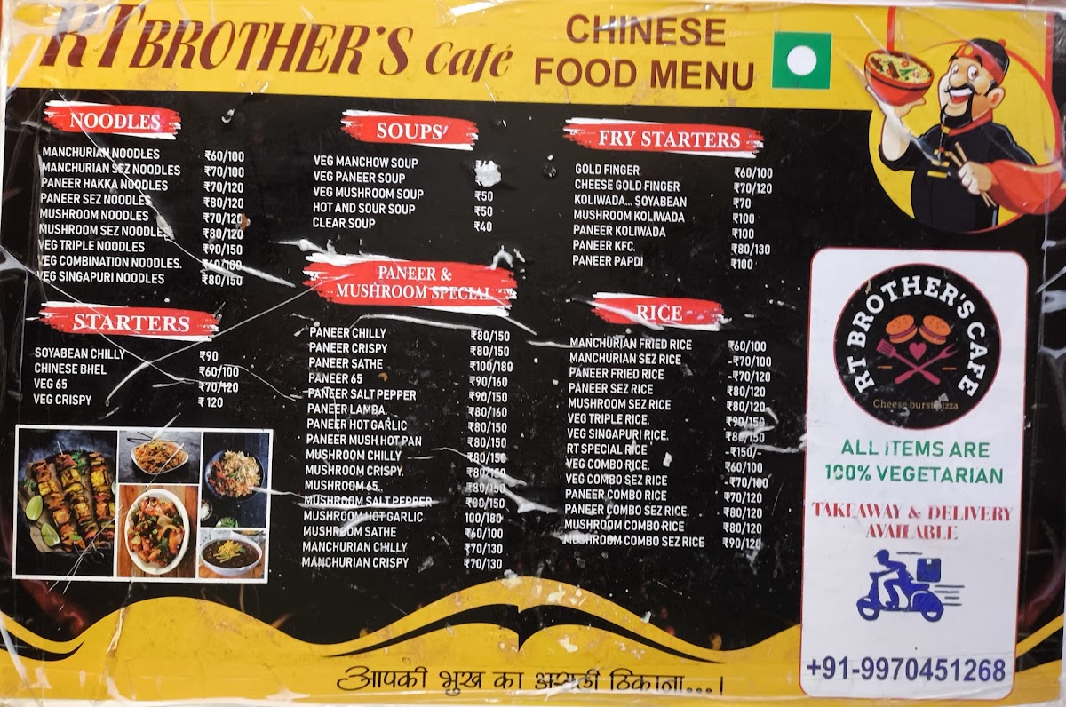 Specializing in Chinese cuisine, RT Brother Cafe presents an array of mouthwatering dishes that cater to varied palates. Imagine sinking your teeth into their Mushroom Cheese Pizza, a delicious fusion of flavors that leaves a lasting impact. If you’re a fan of starters, don’t miss their Paneer Koliwada or Cheese Gold Finger – both are crowd favorites that kindle the taste buds. The rich, spicy notes of their Manchurian Fried Rice paired with a zesty Hot And Sour Soup are perfect for those looking for comfort food that warms from the inside out.